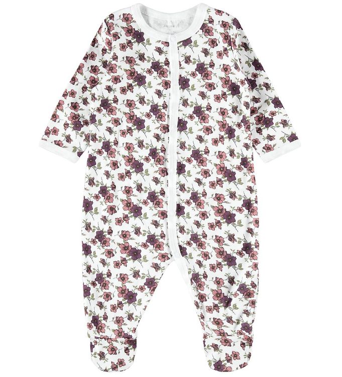 Pysj i 2-pk med fot. Pysjene lukkes med knepping. En med print på hele, og en med lite print på brystet.