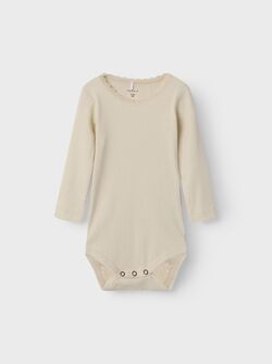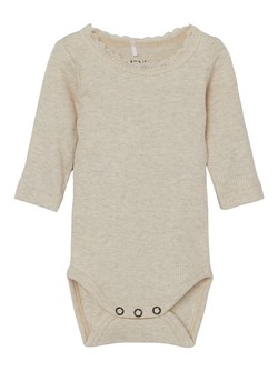 Lil'Atelier - Body Gayo Koj Turtledove er en ensfarget naturhvit body med pyntevolang rundt halsåpningen, i en deilig myk kvalitet fra det danske merket Lil' Atelier. Et allsidig plagg å ha i babyens garderobe. Trykknapper på venstre skulder og mellom bena.