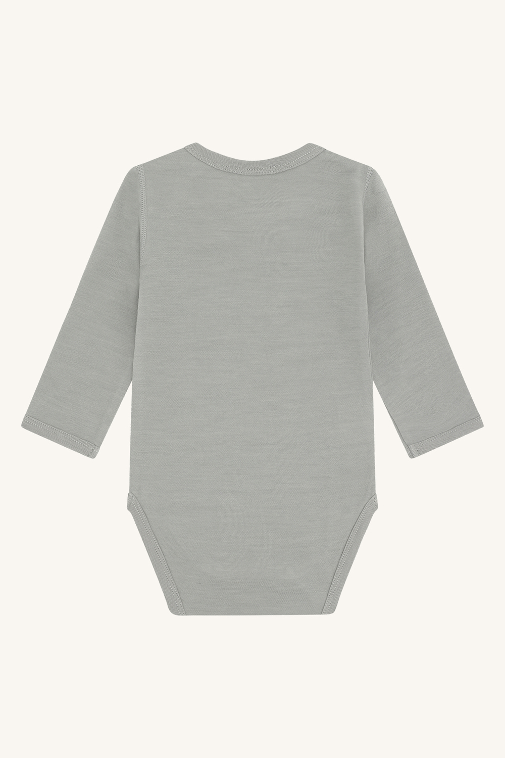 Body fra hust & Claire med ull ytterside og bambusviscose inn mot huden. Knepping på skulder.