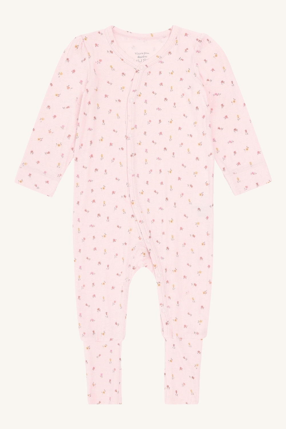 Pysj med nydelig blomsterprint. Herlig bambusviscose. Knepping i front. Kan brettes ned nede, slik at det kan bli som en sokk.