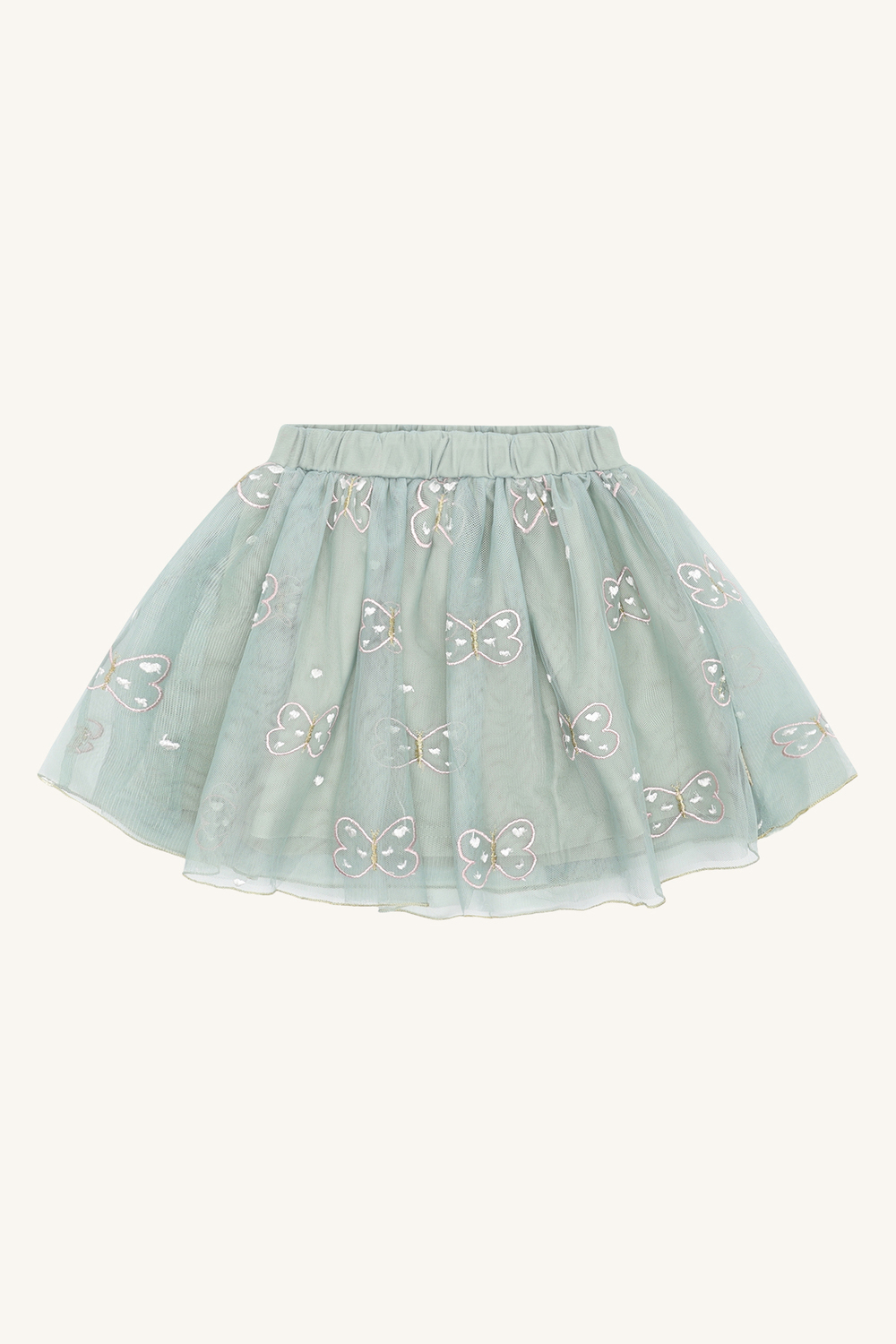 Søtt tyllskjørt i en nydelig grønnfarge. Broderte konturer av sommerfugler.