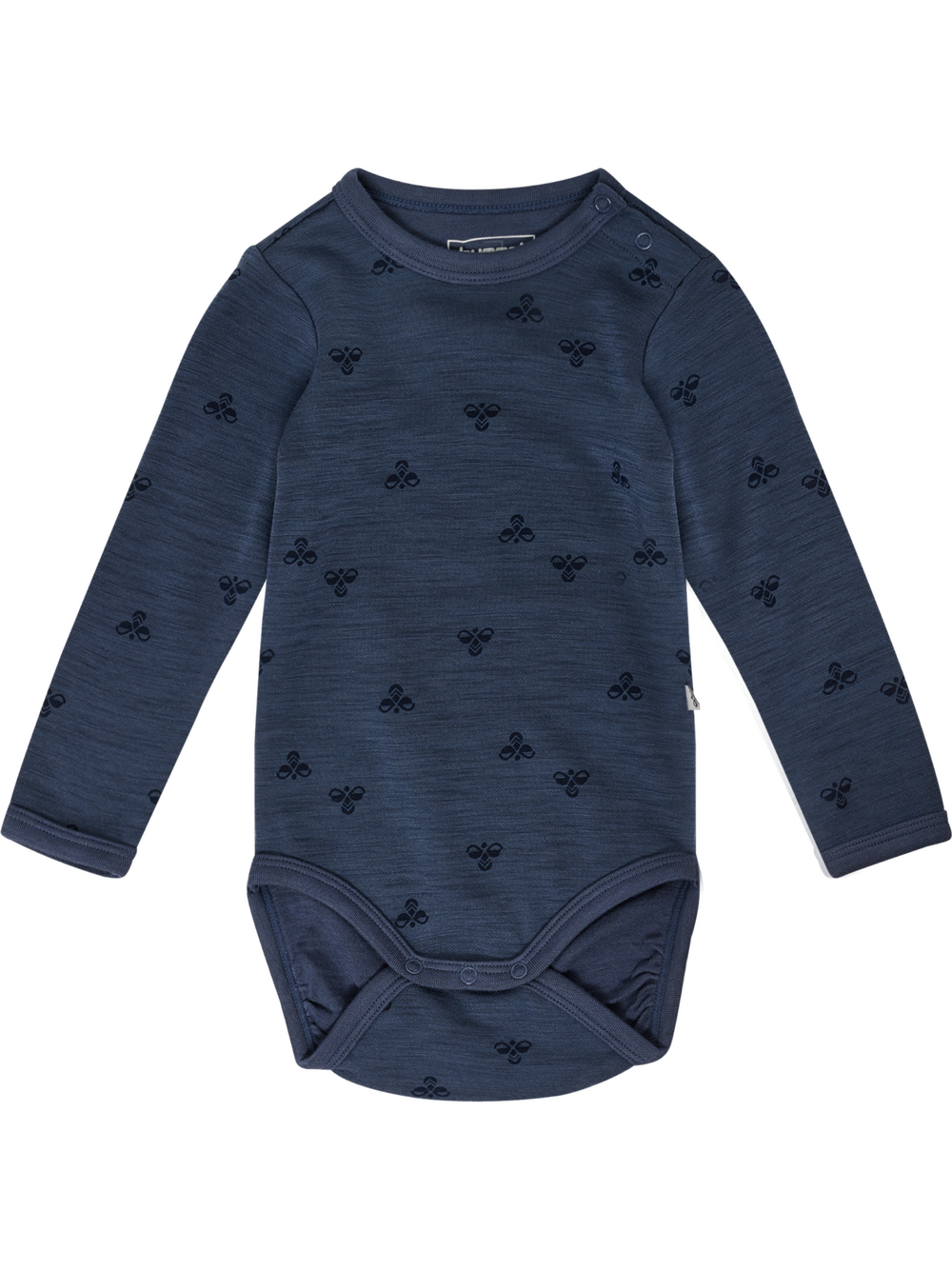 MINI WOOL BODY L/S er designet i Danmark og laget av en blanding av merinoull og viskose for naturlig varme og myk komfort. Den har en hummel-logodetalj og er produsert uten mulesing, noe som gjør den både stilig og ansvarlig produsert.