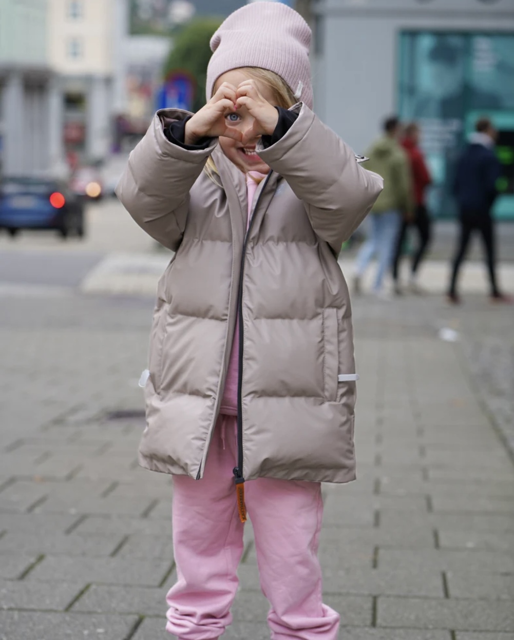 Den fantastisk populære bobleregnjakka til barn er tilbake. Laga i PU materiale med ei vannsøyle på 10 000 mm. Desse er heilt vanntette der regnet prellar av stoffet. Jakkane har vattering i form av kunstfiber så her kan minsten halde seg varm og heilt tørr når hausten sett inn for fullt. Det syntetiske foret held på varmeevna når det blir vått, i motsetning til dun, og sidan dette er ei regnjakke har me valt bort dunet. Jakke er slitesterk og kan vaskast som vanleg PU-regntøy utan å miste form og funksjon. I tillegg tørkar syntetiske materialar raskare enn naturleg dun, noko som er ideelt når PU-stoffet ikkje skal i tørketrommelen. I tillegg har jakka sjølvsagt teipa og sveisa saumar.