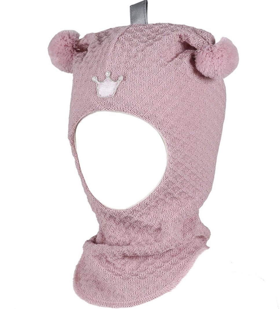 Kivat - Balaclava i Ull Struktur Dusker Krone En pen, strukturstrikket balaclava med to dusker og krone-applikasjon foran, i tykk ull og med komfortabel øko-bomullsfôr – perfekt for å holde små barn varme på vintertur.