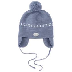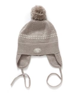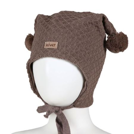 Fin vinterlue fra Kivat med dusker og knyting. Vaffelmønster. Skinnlapp i front.