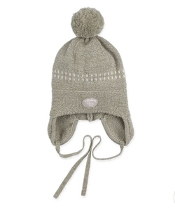 Fin vinterlue fra Kivat med dusker og knyting. Vaffelmønster. Skinnlapp i front.