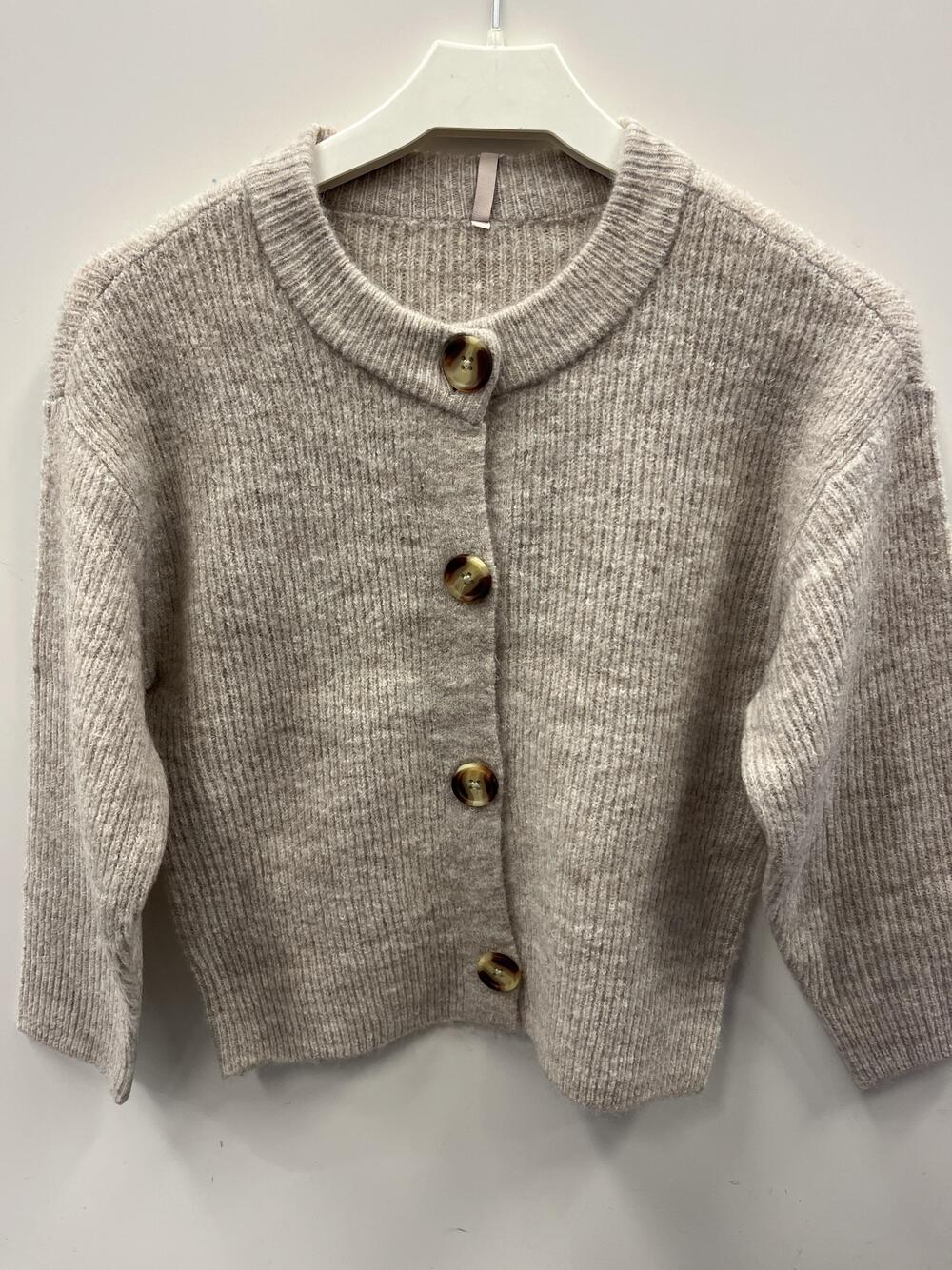 Herlig vardigan, med store knapper i front. Rille-struktur.