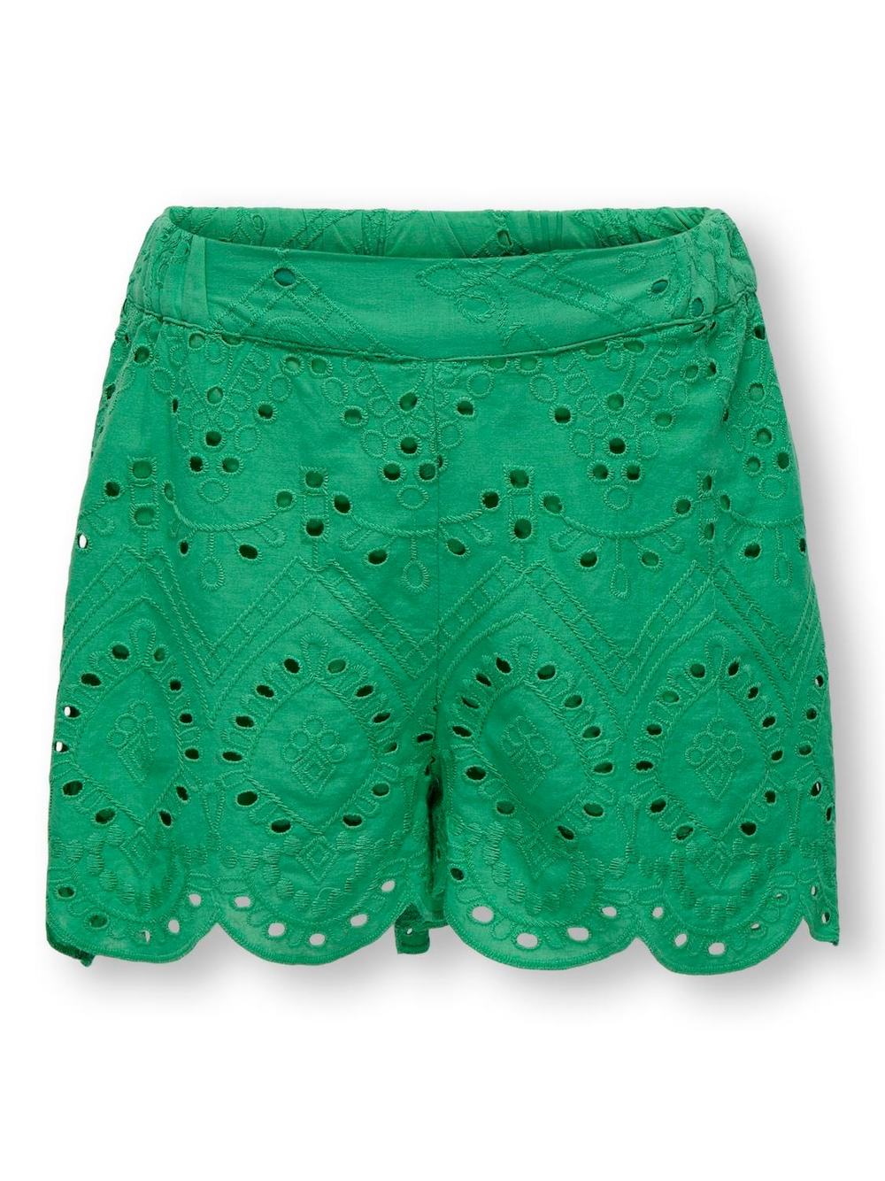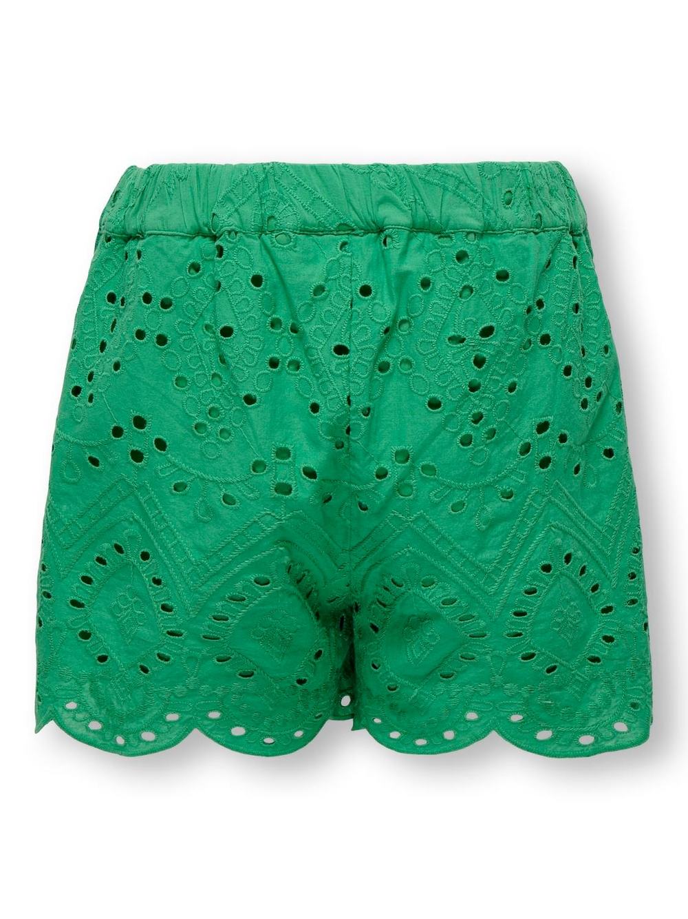 Shorts i fin mønstring. Finnes bluse i samme kvalitet. Shortsen er foret, slik at det ikke blir gjennomsiktig gjennom hullmønstring.