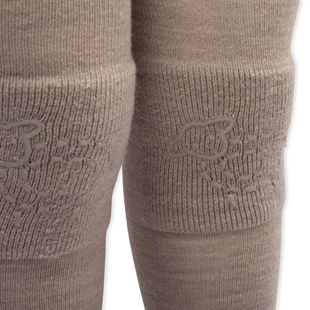 Strømpebuksene har antiskli under føttene, men også oppå tærne og på knærne. I tillegg er de ekstra forsterket på både på knærn og tær, slik at strømpebuksene ikke slites så raskt. Dette er til god hjelp når babyen skal lære seg å krabbe og gå.