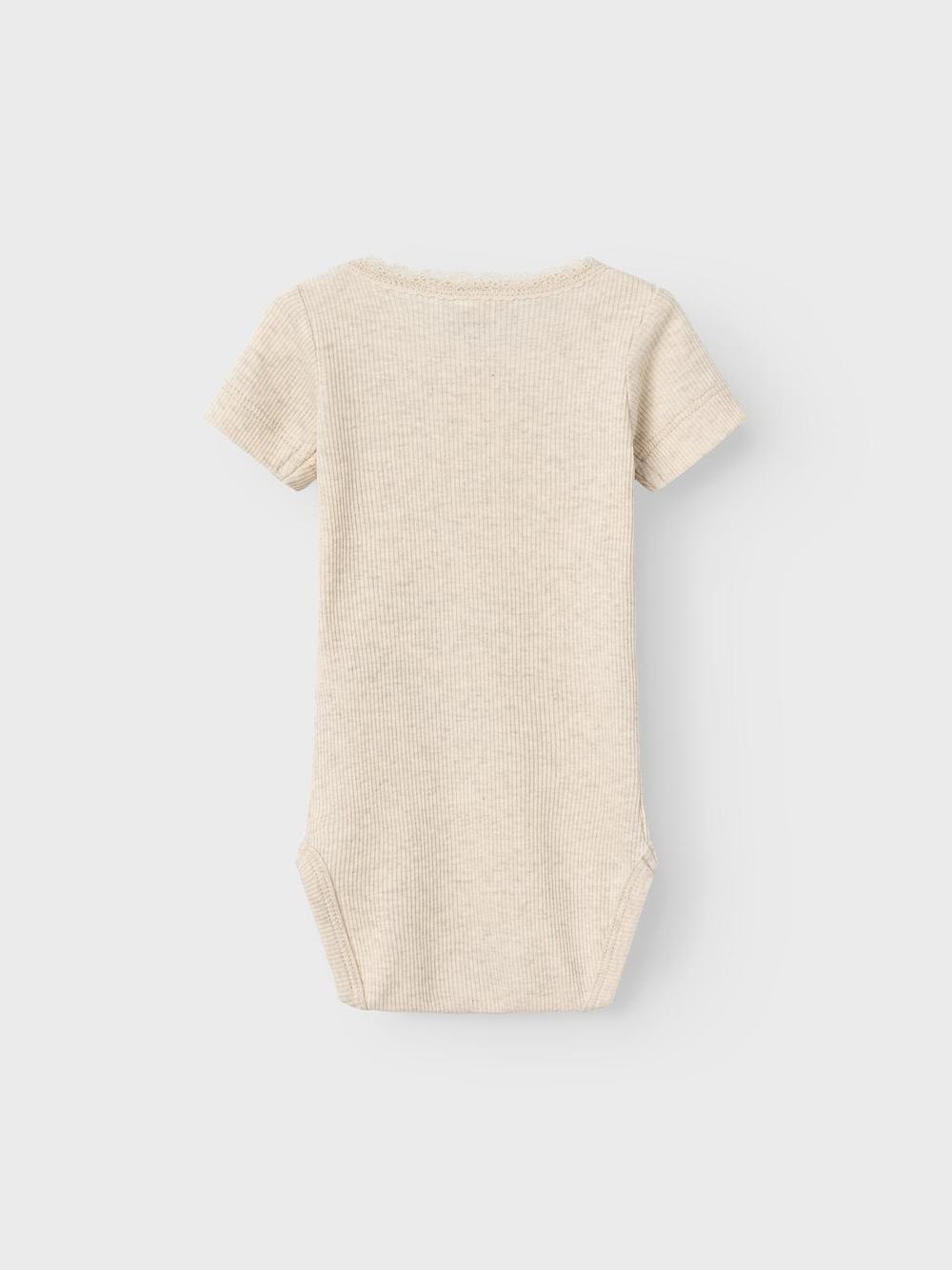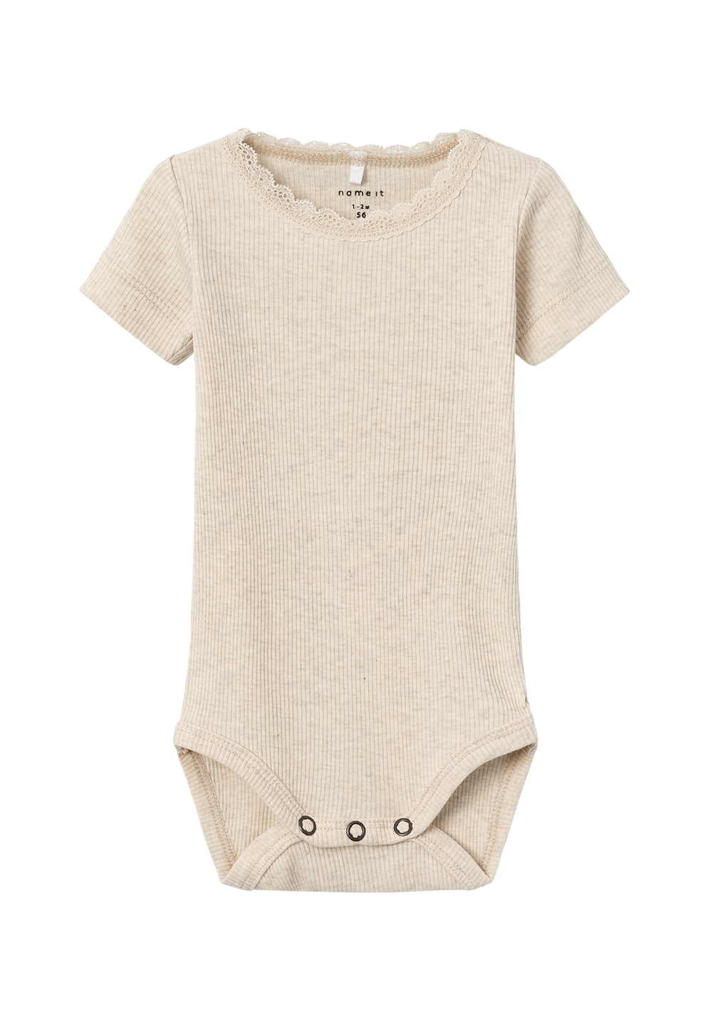 Kortermet body i ribbkvalitet. Liten blonde rundt halsen.
