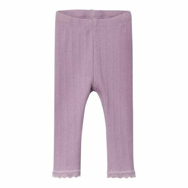 Leggings med fint ribb-mønster. Liten blondekant nederst.