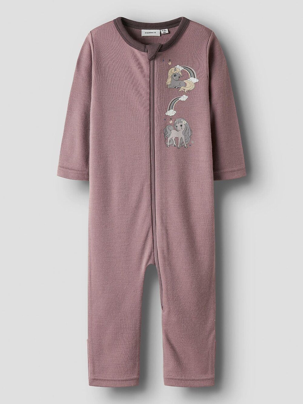 Deilig heldress/pyjamas til baby i myk og pustende merinoull. Den har søtt print over hele med glidelås hele veien.