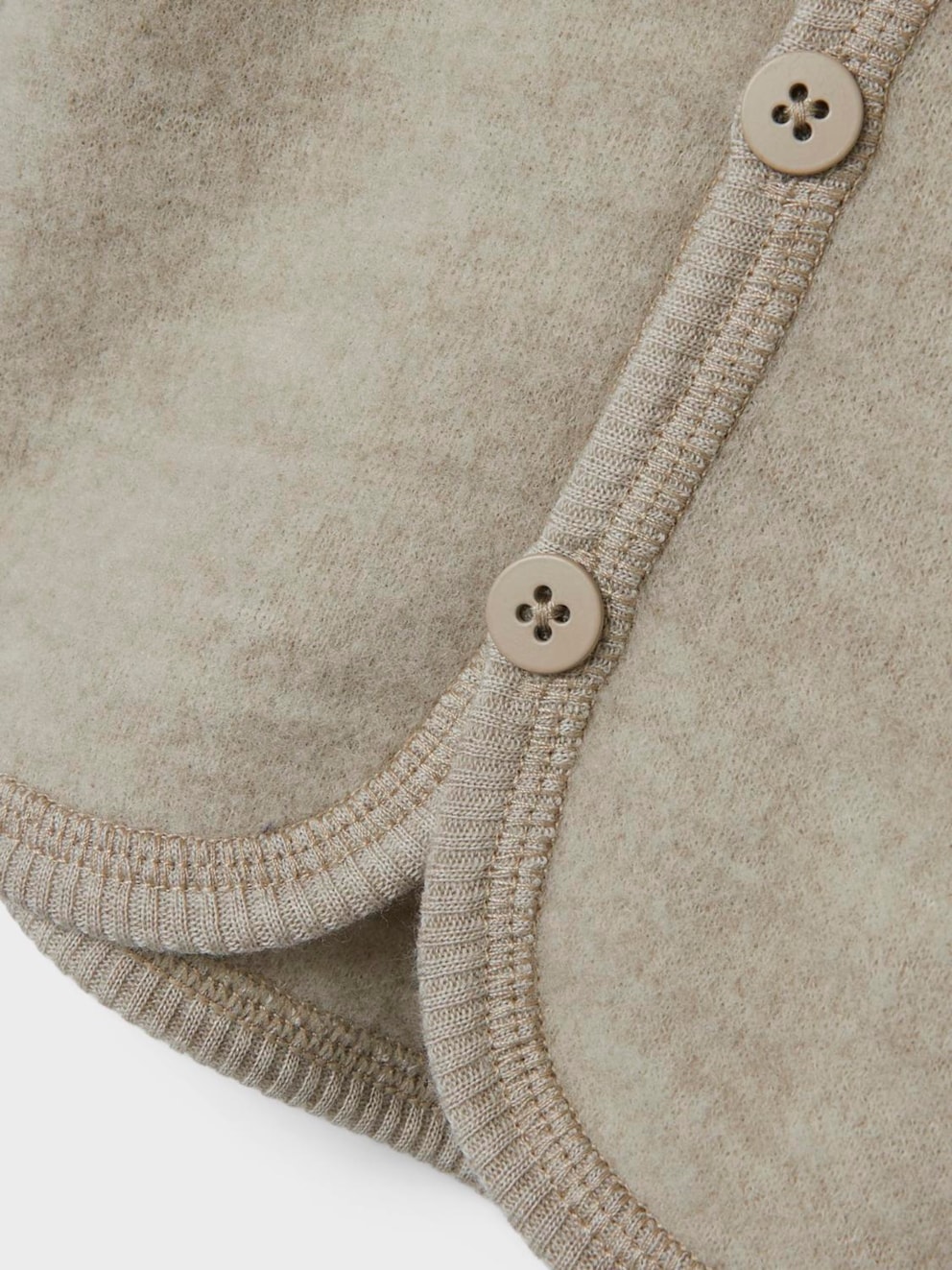 Jakke i herlig ullfleece. Denne kan brukes som en lun cardigan inne, eller i vognen som jakke. Jakken har ikke membran, så den vil ikke ta imot for vind om babyen er utav vognen.