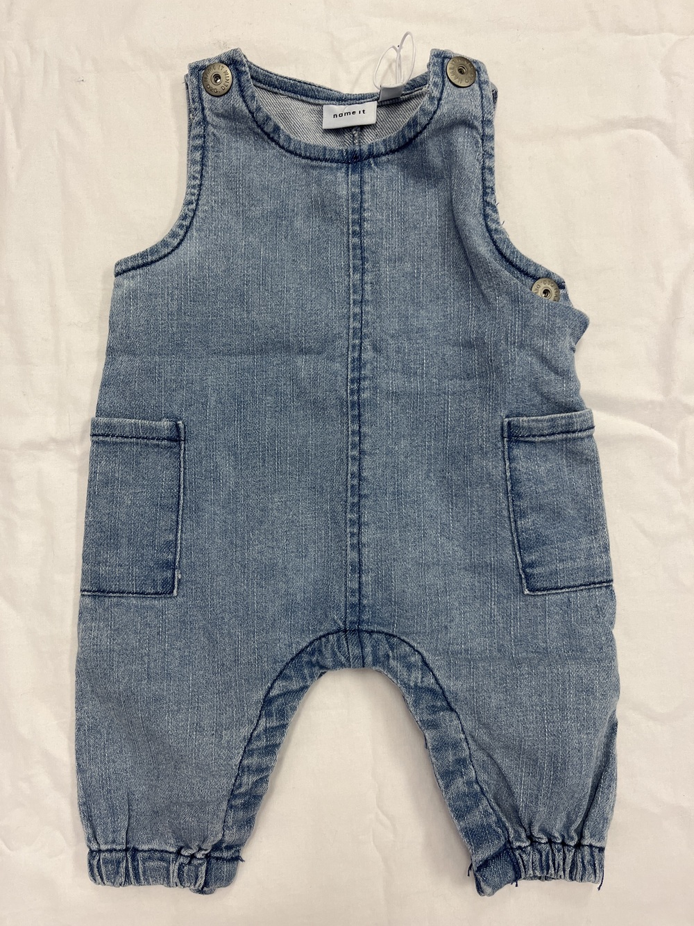 Fin overall i myk kvalitet. Knepping på skulder. Knepping skrittte som gjør bleieskift enklere.