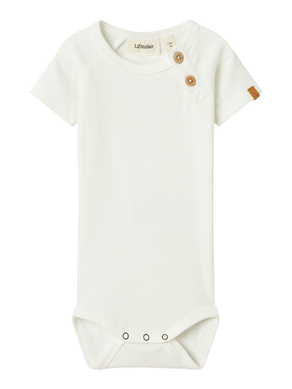 Enkel body i herlig kvalitet. Skrå åpning ved skulder med skjulte knapper (NB! avviker fra bildet. Bodyen har ikke treknapper i åpning ved skulder. Knappene ligger skjult under åpning.
