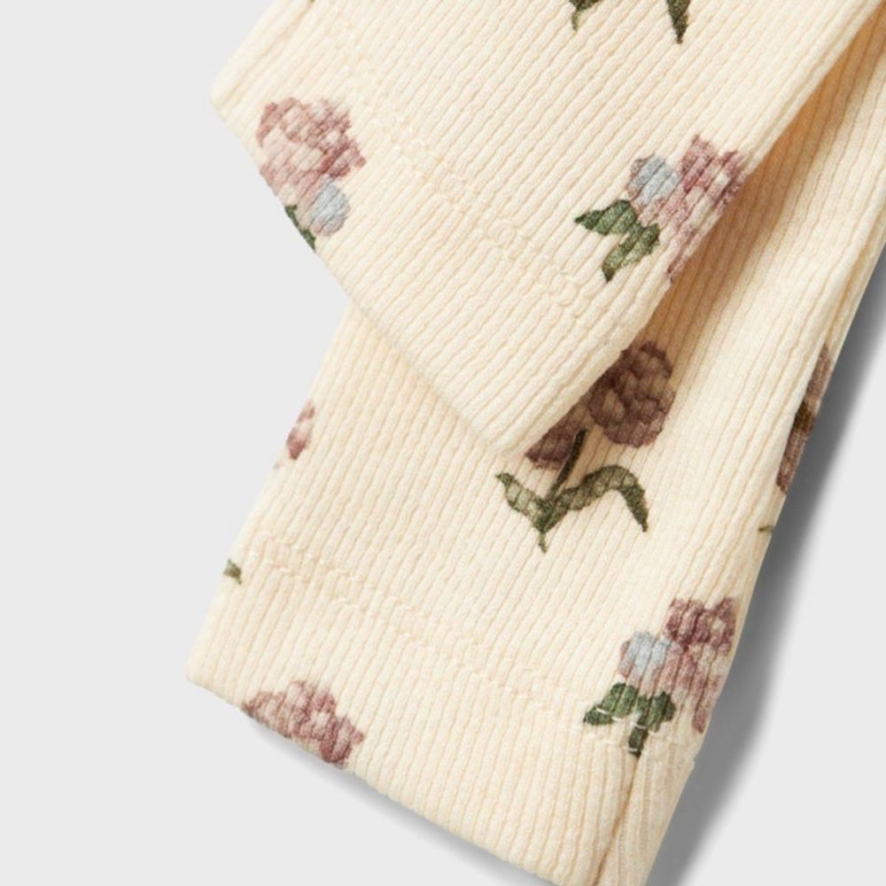 Søt leggings i ribb-kvalitet. Liten rysje rundt midjen.