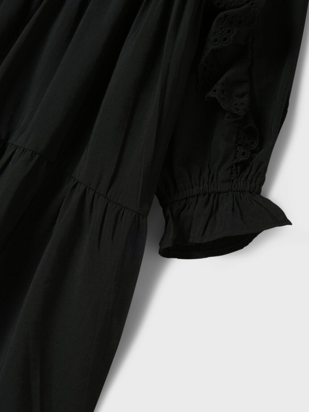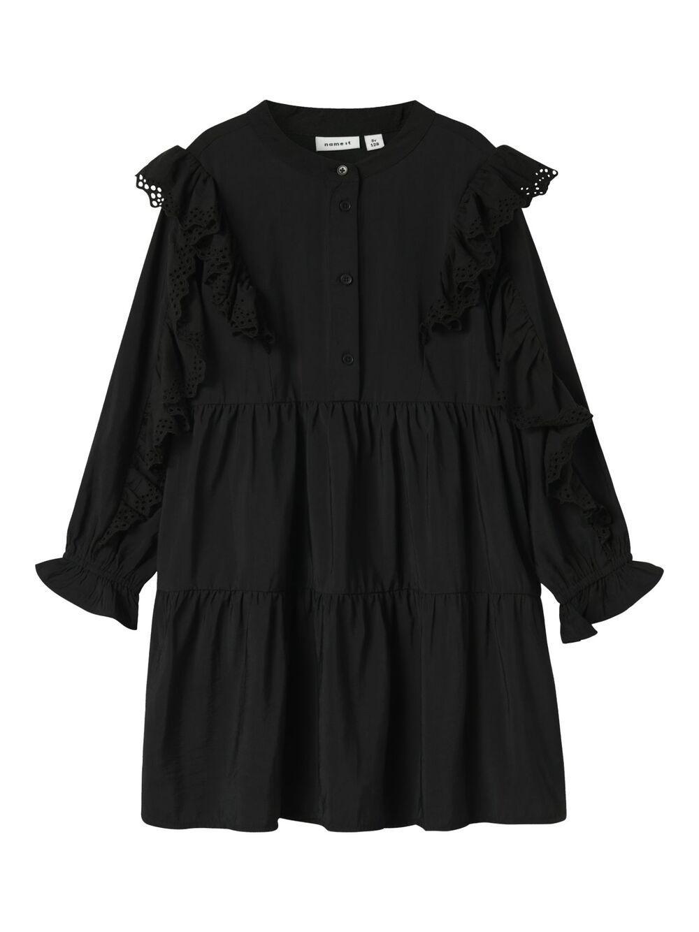 NKFNOPARIA LS DRESS er en elegant og tidløs kjole i sort, perfekt for enhver anledning. Med lange ermer og en behagelig passform, gir denne kjolen et sofistikert preg til garderoben din.