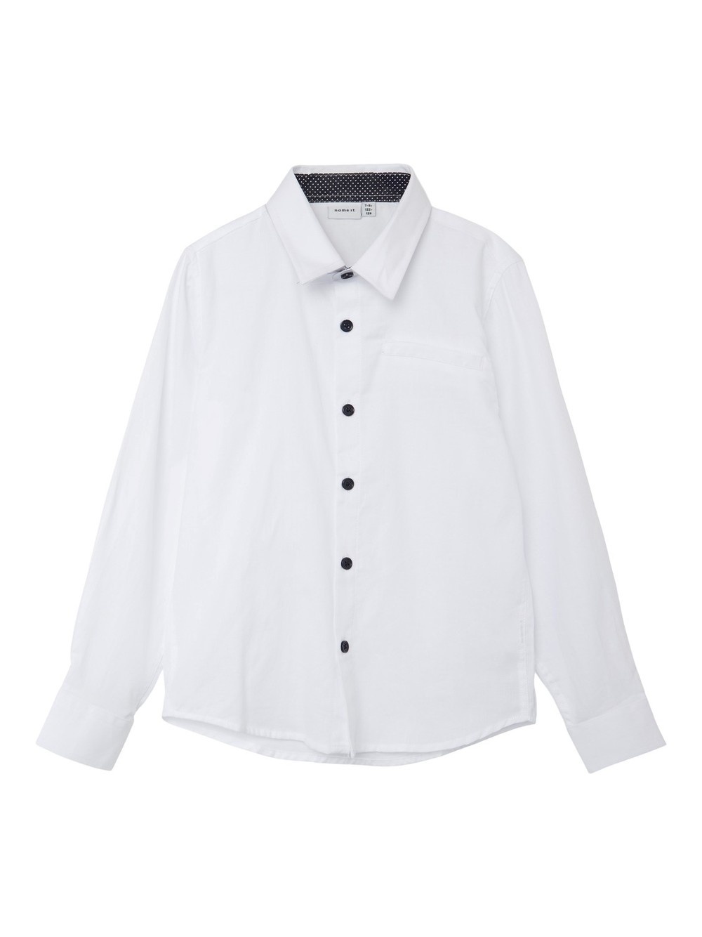 Skjorte med fin struktur. Kontrast på knapper og i hals og mansjett.