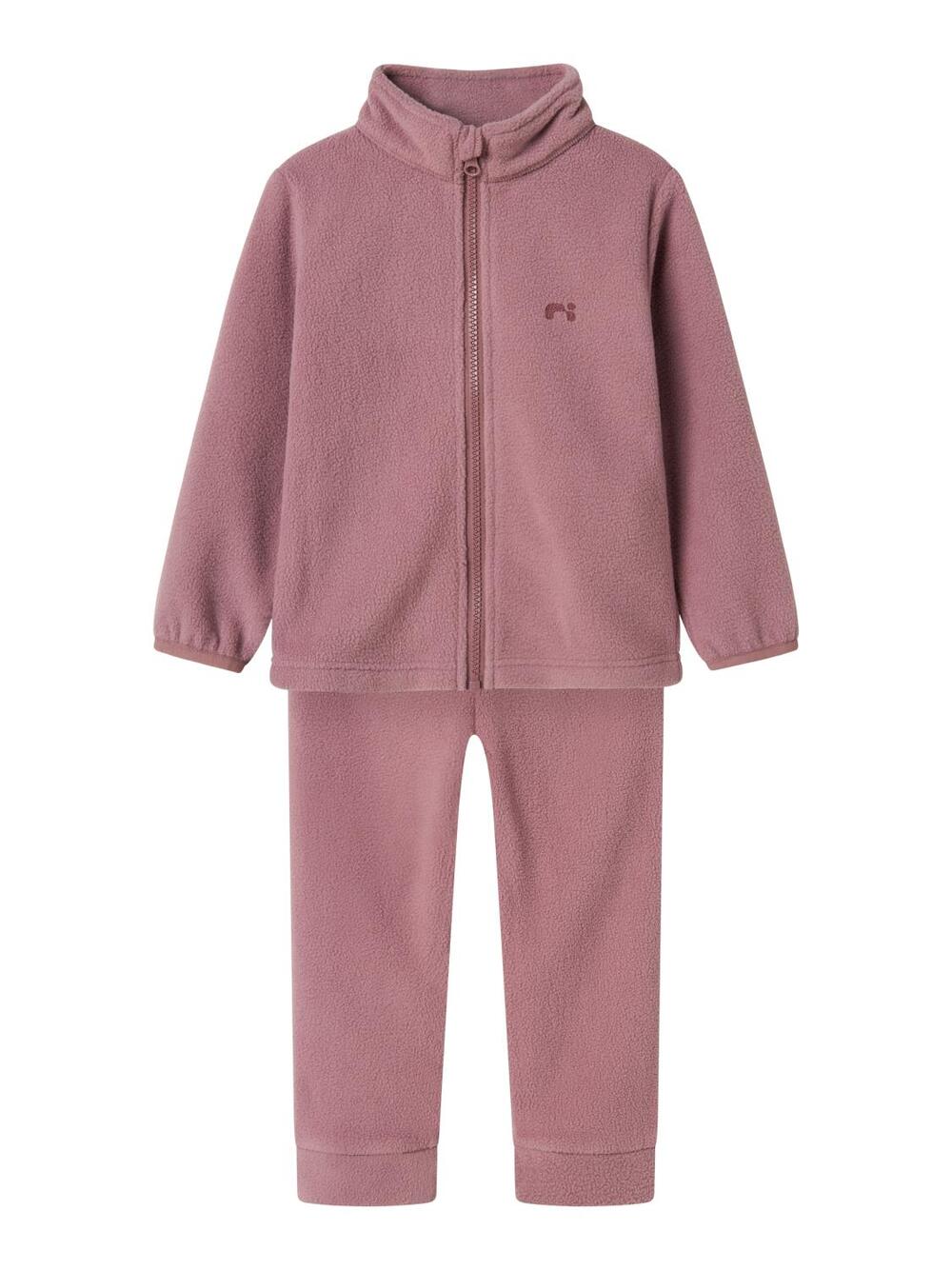 2-delt fleece sett fra Name It i Str 6-12 år. Jakken har høy hals og glidelås i front. Buksen har strikk i livet.