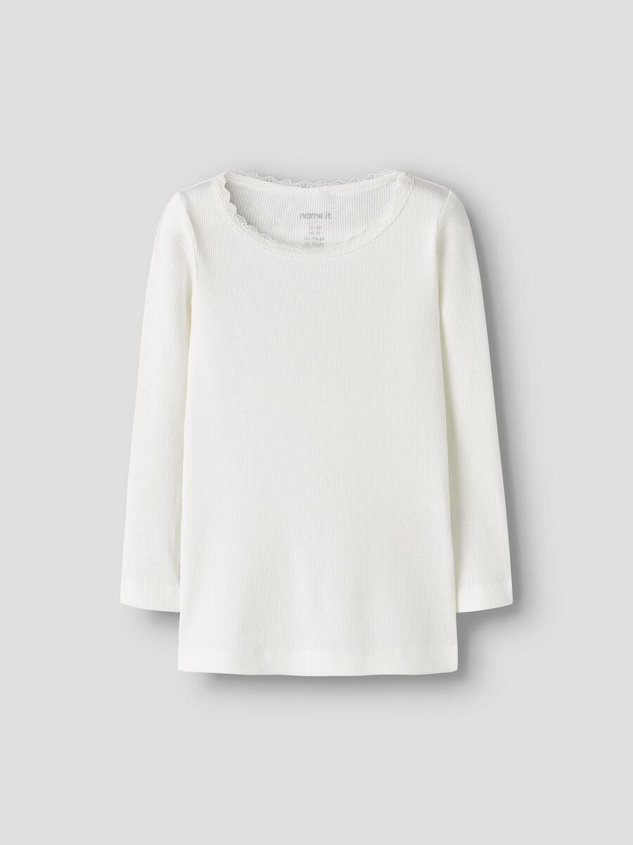 Fin topp med smal ribb. Fin detalj med liten blonde øverst rundt halsen.