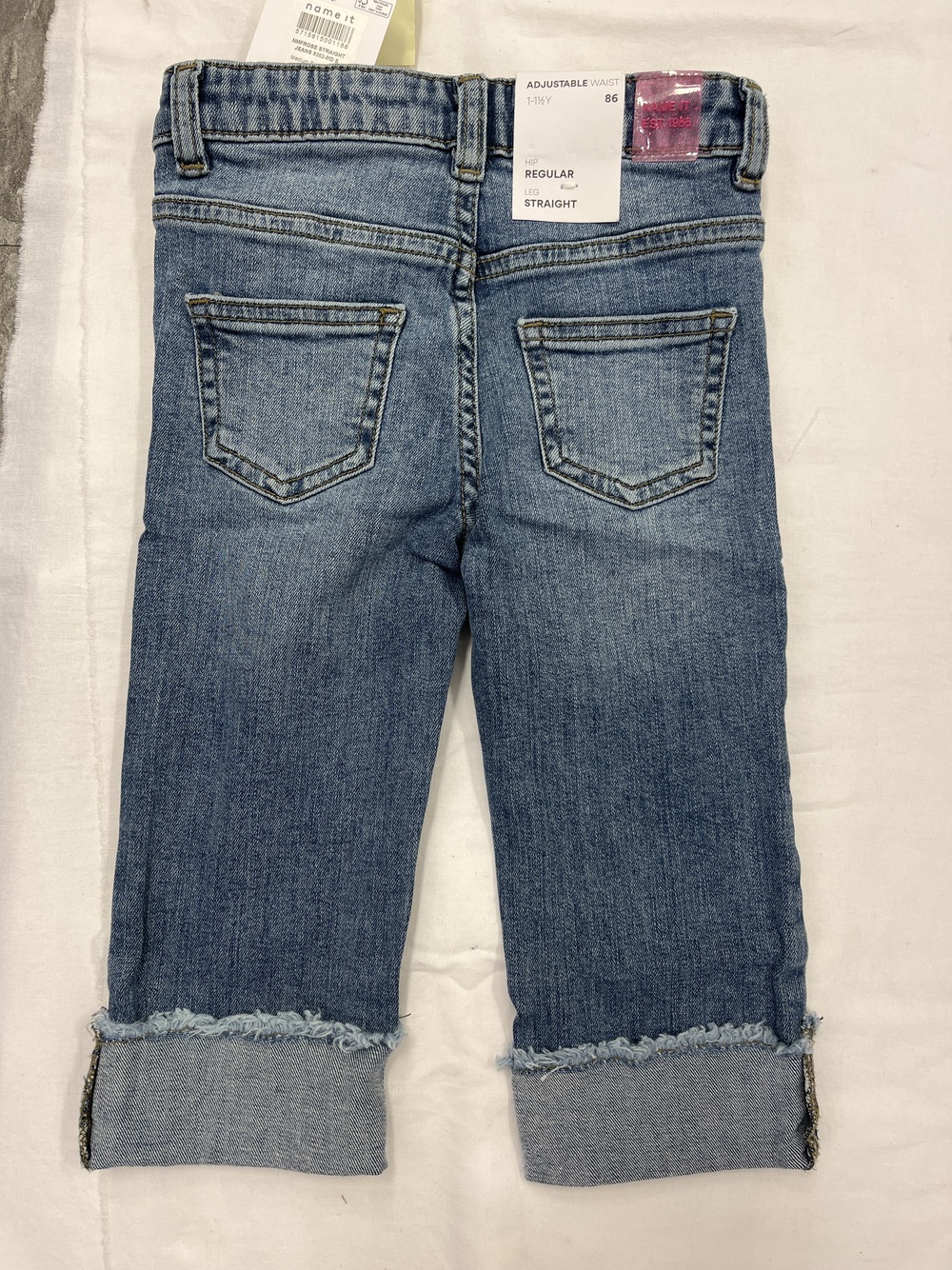 Kul jeans i stretchkvalitet. Laget med bred oppbrett nede.