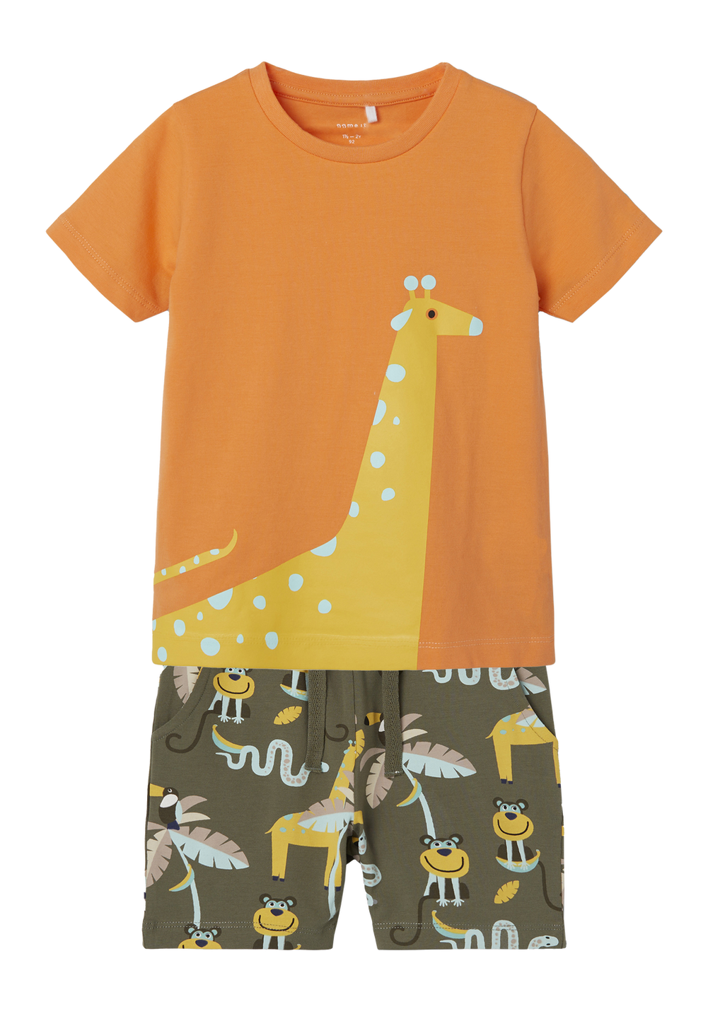 Fine sett med shorts og t-skjorte. Shortsen kan justeres i midjen med elastisk stramming.