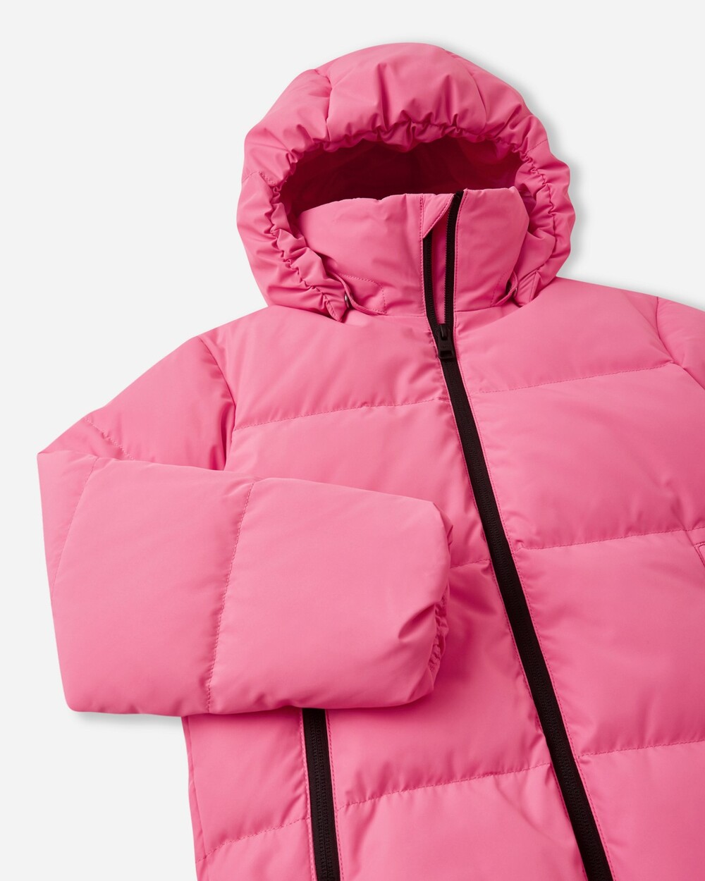 I tillegg til å holde barnet tørt og varmt, har denne jakken utmerkede pusteegenskaper, som gjør den ideell for aktiv lek og sport. Hovedmaterialet er laget av 100% resirkulert polyester med polyuretan laminering, mens fôret består av 55% resirkulert polyester og 45% polyester. Isolasjonen består av 60% dun og 40% fjær.