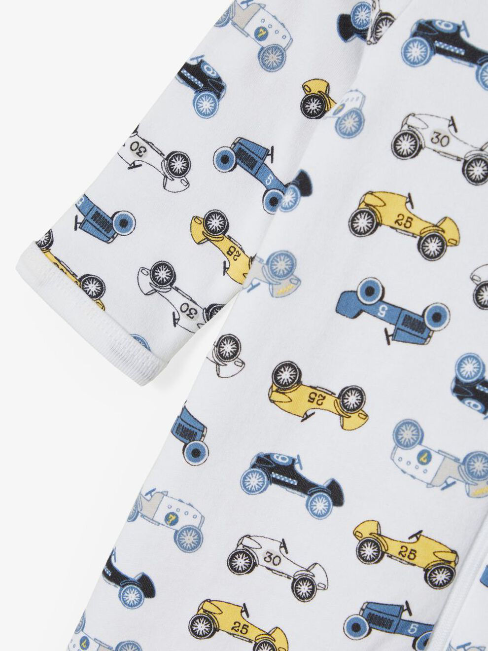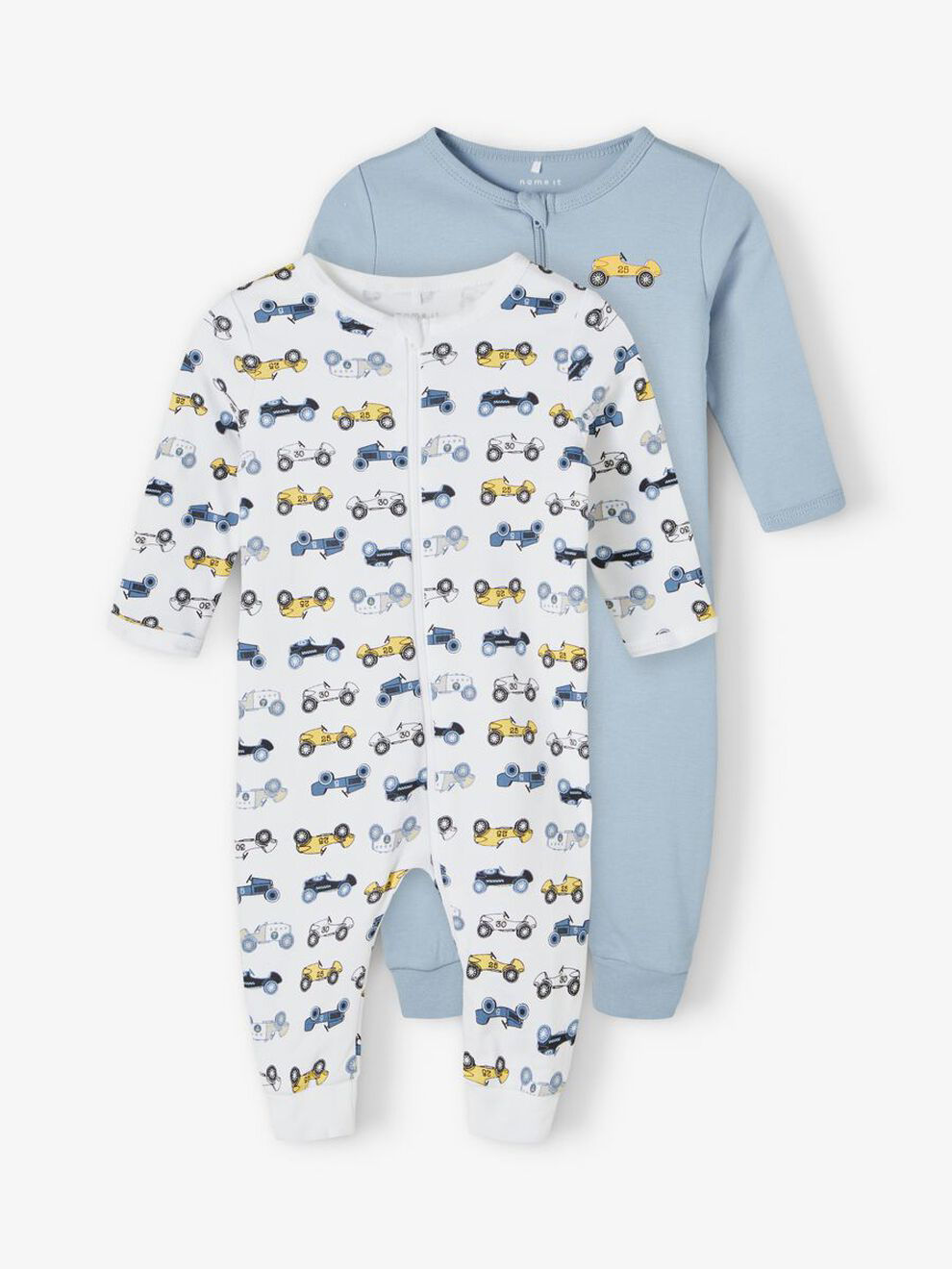 2-pk pysj uten fot, en med all over print og en med lite print i front. Glidelås i front. Hakebeskytterm slik at glidelåsen ikke skraper på haken.