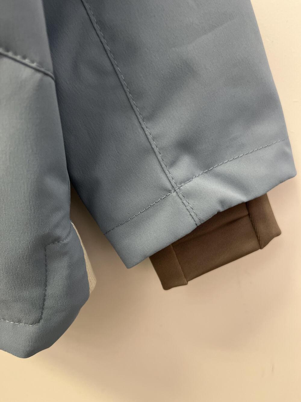 Sommerjakken åpnes med glidelås med hakebeskytter og dobbelt vindstolpe, som lukkes på utsiden med skjulte trykknapper. Det er to lommer med klaff foran. Øverst på venstre erme er det en praktisk refleks. Sommerjakken har grått, glatt vevd og er vattering.