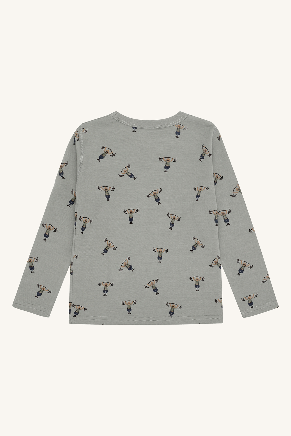 Genseren har et klassisk snitt med lange ermer og rund hals. Den dus grønne fargen Forest Fog kombinert med det morsomme Strong Man-printet gir genseren et lekent og moderne uttrykk. Den elastiske kvaliteten sikrer en komfortabel passform og god bevegelsesfrihet, ideell for både lek, barnehage og fritid.