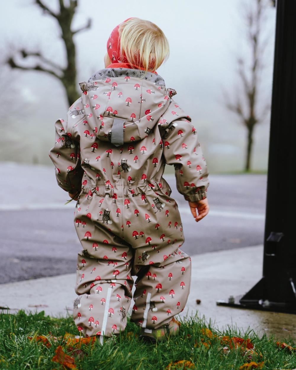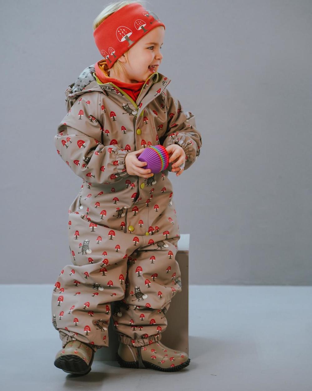 Heilårsregndress Hagl - kolleksjon "Tolvmeterskogen 2025". Den tradisjonelle Heilårsregndressen med vattering i både torso, ermer og bein. Denne regndressen tålar både øspøs regnvêr og mykje leik.