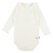 Hvit Lillelam ullbody med krage i 100% Super Soft Merinoull – det mykeste ull. Ullkvaliteten er tynn, ment for å brukes hele året. Undertøy om vinteren og genser på varmere dager. Lillelam ullbody har en dekorativ rysjekrage og bølge-folder rundt mansjettene. Ellers fin og glatt i hele lengden. Super behagelig. Fin body å bruke under kjole eller genser til finere anledninger. Samtidig enkel for hverdag.