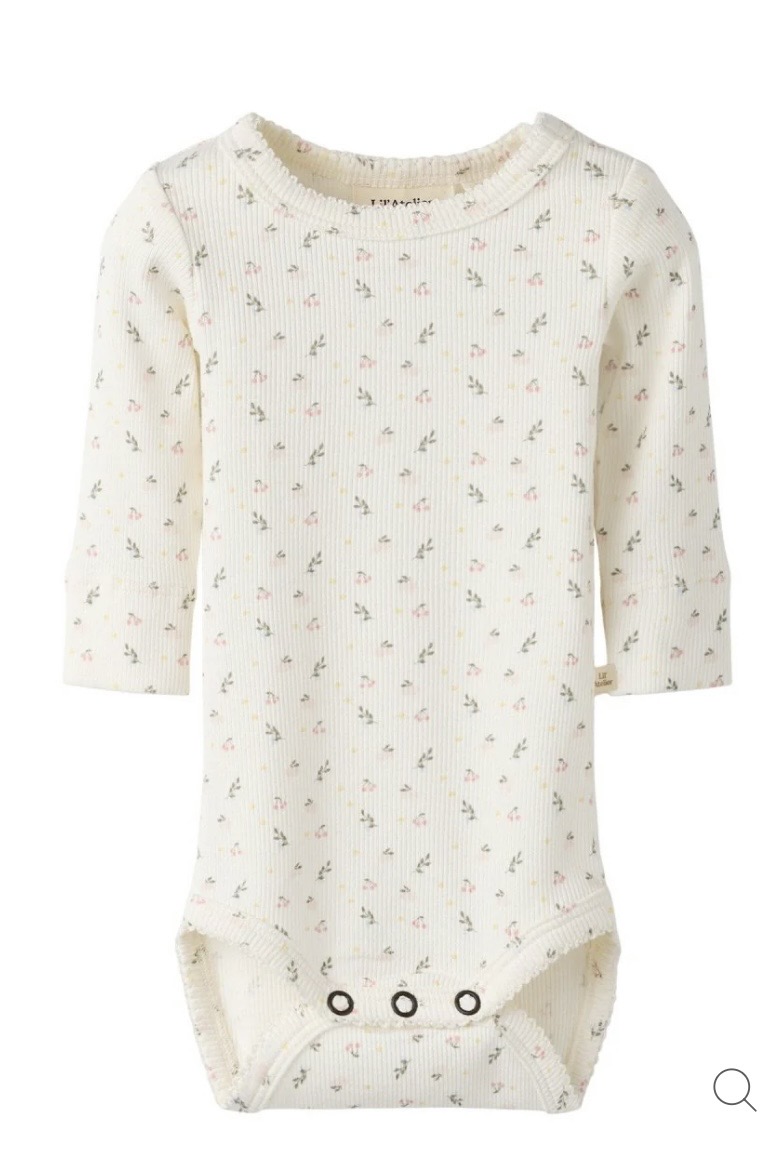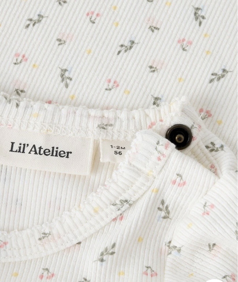 Lil’ Atelier GAGO LS Slim Body er en nydelig og tidløs body til baby, laget i en ekstra myk ribbestrikk som føles behagelig mot sensitiv hud. Det småblomstrete printet på fargen Coconut Milk gir et rolig og eksklusivt uttrykk – perfekt alene eller under andre plagg.