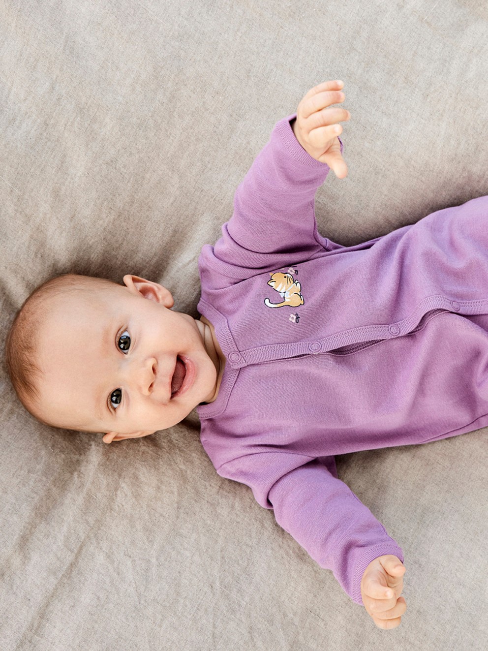 2-pk pysj fra Name it. Begge pysjene har fot. Lukkes med knapper. En pysj med all over print, og en med lite trykk i front.
