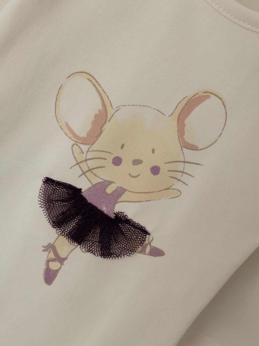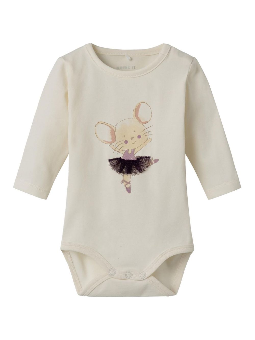 Søte body med print og tyllpynt i front. Knepping på skulder.
