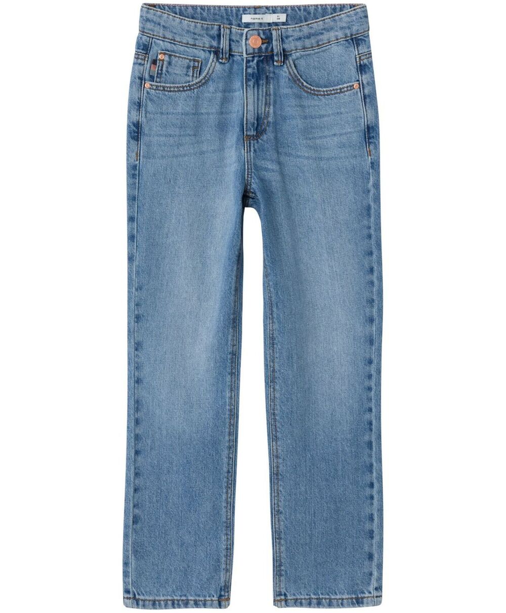 Name it Rose straight Jeans. Utrolig kule straight-fit jeans til jente. Denim buksa har smal midje med rette ben og høy midje. Kan justeres i midjen for god passform. En klassiker som passer til alt. 80% Bomull, 20% Resirkulert bomull.