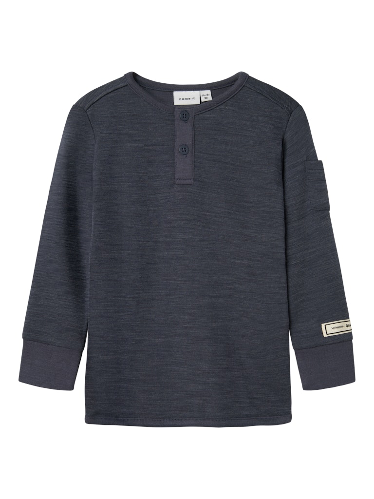 Name It Wyla ull/bambus topp i meget myk kvalitet med ull utside og bambus innside samt kanting, knappestolpe i front. 46% merinoull 44% bambusviskose 10% polyamide