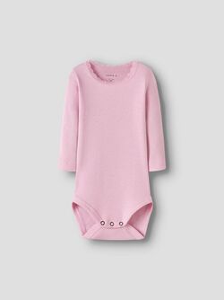 Fin topp med smal ribb. Fin detalj med liten blonde øverst rundt halsen.