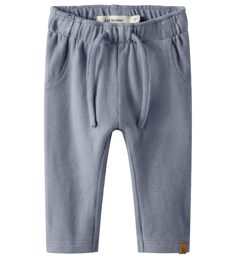 Komfortable bukser fra Lil' Atelier i lyseblå strikk. Buksene har elastisk midje som kan justeres med knapper innsiden. De har dekorative knytinger foran og en avslappet passform.