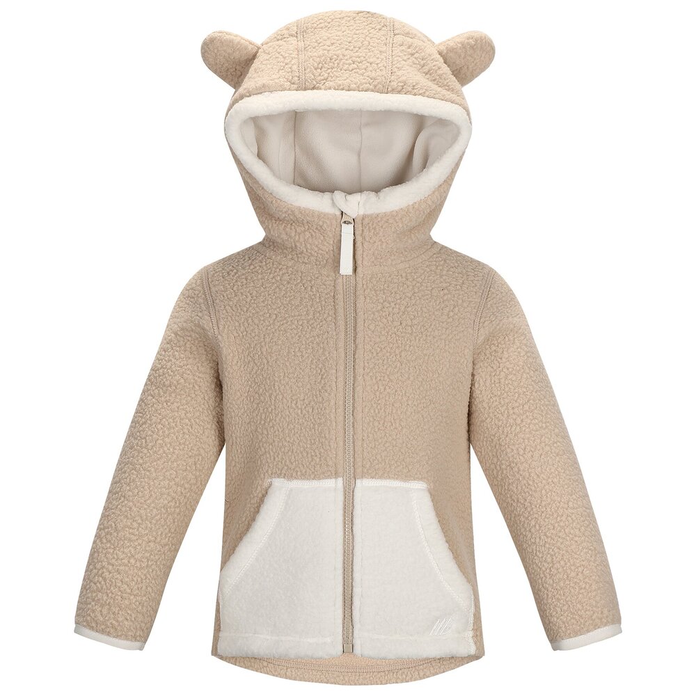Denne fleecefavoritten er en supermyk jakke i tykk og deilig pilefleece laget av 100 % resirkulert polyester. Den er antinuppebehandlet og holder seg fin, selv etter mye lek og bruk. Den rette passformen gjør jakken behagelig å bevege seg i, og den faste hetten med søte bamseører og hakebeskytter sørger for optimal varme og komfort.